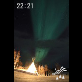 | 到着時は雲が広がっいましたが、星は少し見えていました。時間と共に雲が広がり雪が降り始めましたが、深夜過ぎにオーロラは雲の上に現れ揺れ動き始めました。その後雲は薄くなり星が見え始めオーロラは各方向で見え始め強弱を繰り返し揺れ動いていました。 | ||||